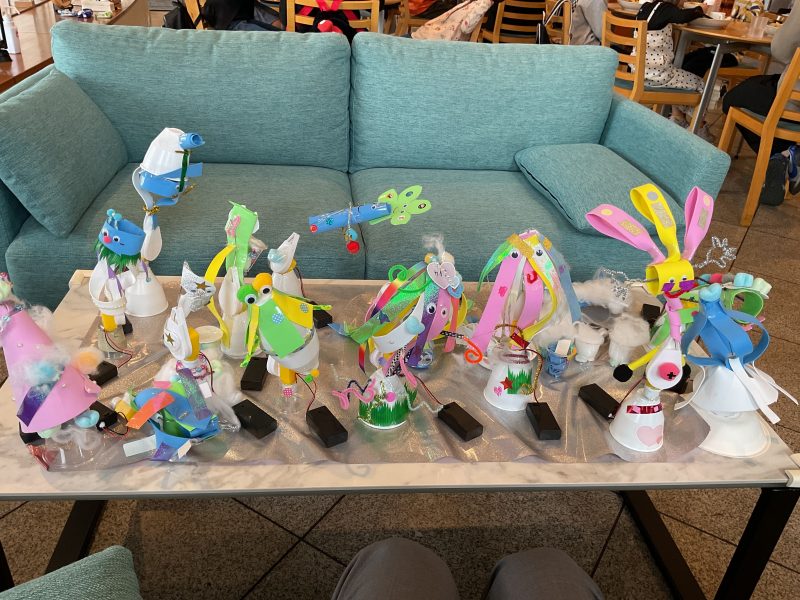 身近な材料でアート作品を作った後、美味しいごはんを楽しむ「こどもアートカフェ」。