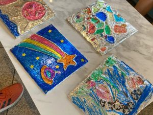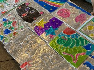 今回は、アルミホイルを使って、ピカピカに光る立体的な絵をつくります。