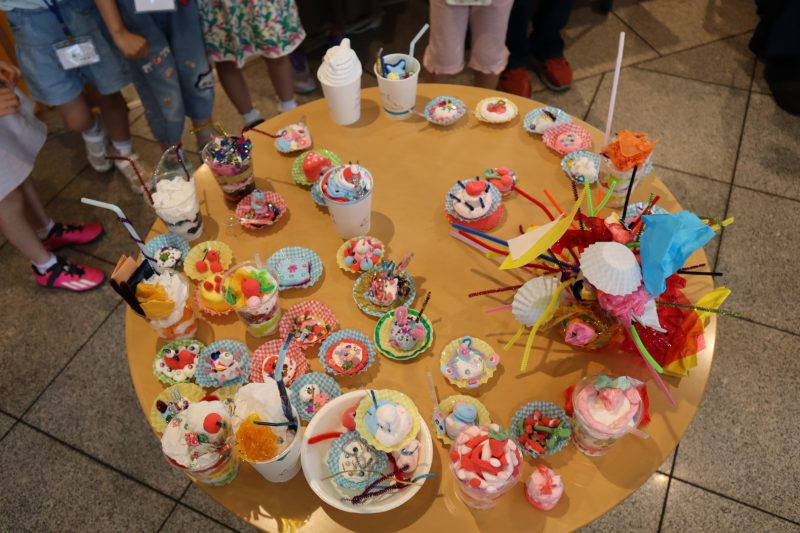 身近な材料でアート作品を作った後、美味しいデザートを楽しむ「こどもアートカフェ」。