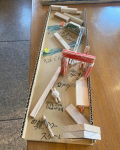 廃材や身近な素材を使って、おもしろくビー玉をころがす装置をつくります。