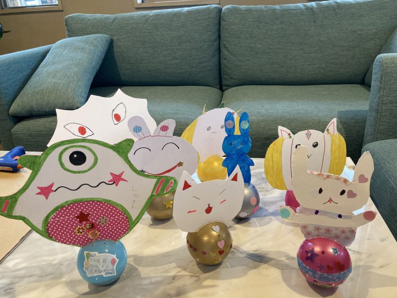 ガチャガチャの玉を使って、指でたおしても、ゆらゆら揺れながら起き上がる「空想の動物」をつくります。